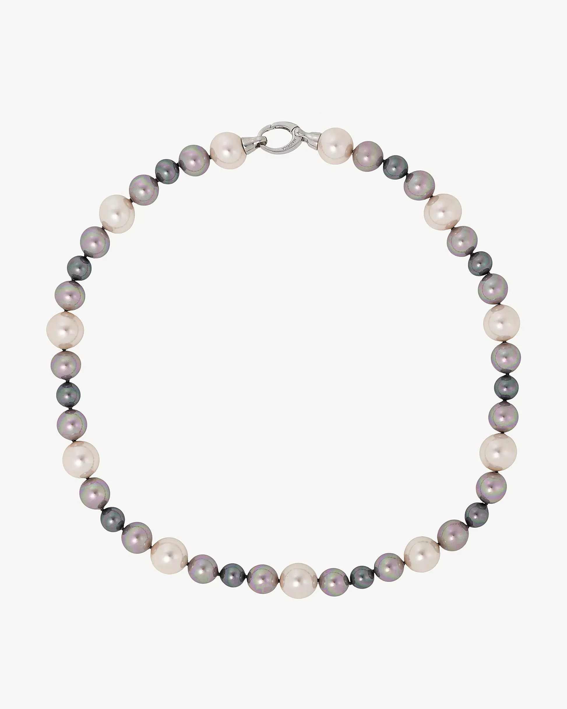 Collar corto de 46cm de largo en plata, con perlas redondas blancas, gris y nuage de 8 a 12 mm