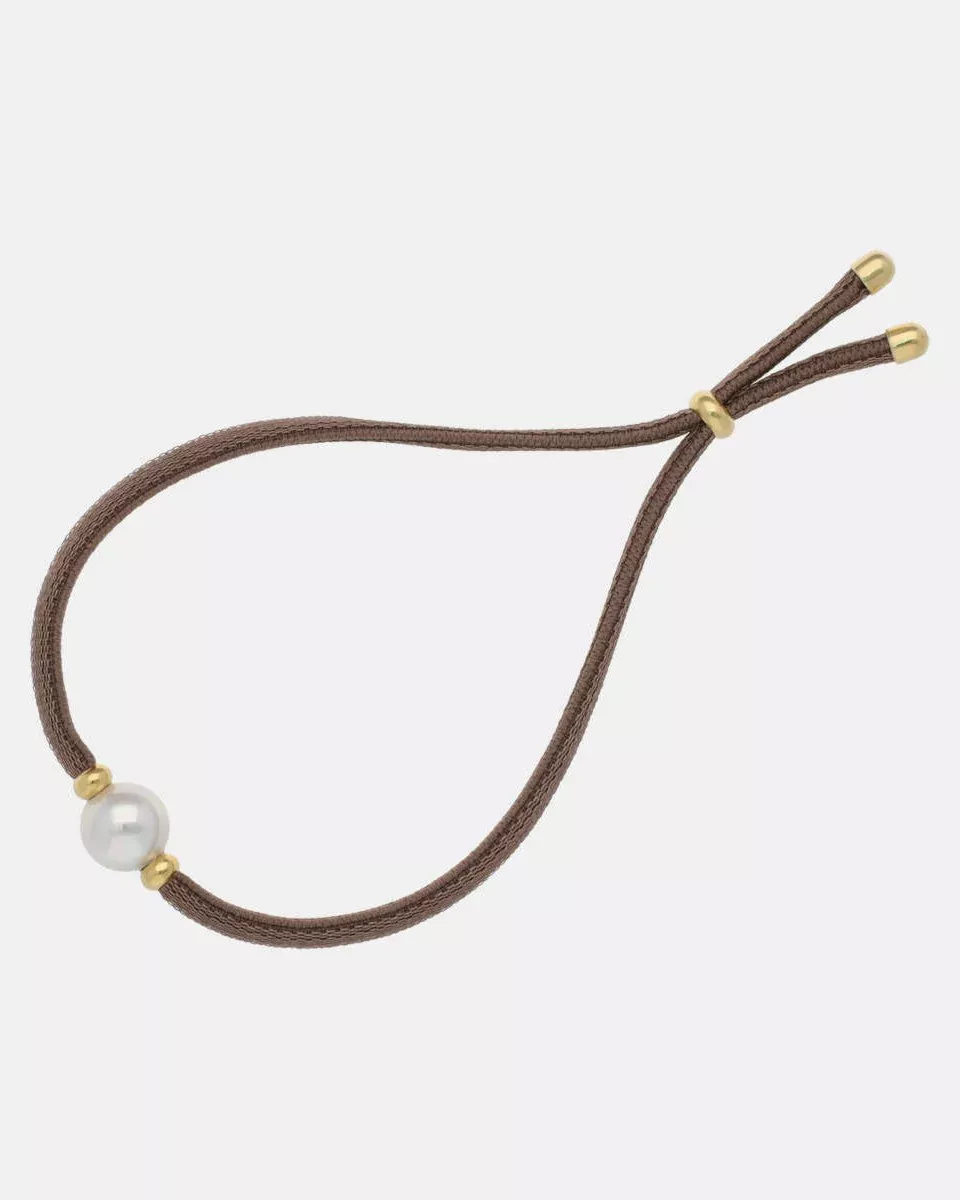 Brazalete elástico de 20 cm ajustable en color taupe, perla redonda blanca de 8 mm